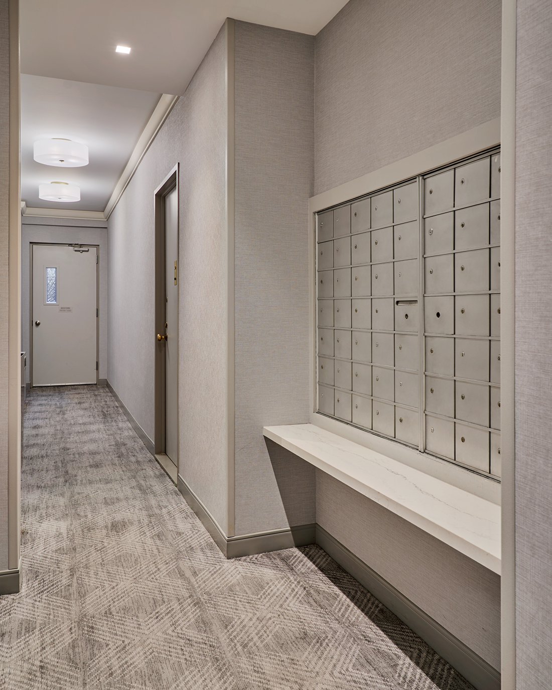 • Commercial-Grade Carpet hides wear and tear while featuring a stunning ombre pattern to define the elevator landing